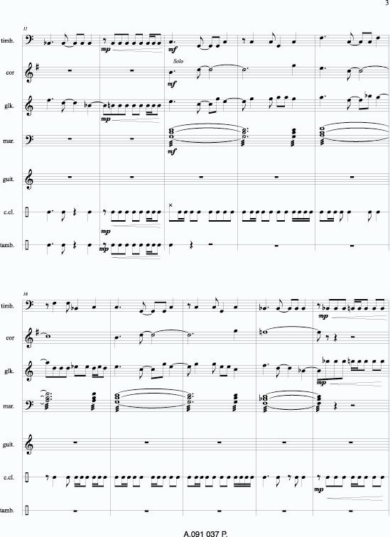 Piece pour 7 musiciens : timbales, cor en Fa, glock, marimba, guitare, caisse claire et tamb de basque.
