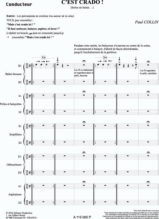 Scene de balais pour ensemble de percussionnistes (de 10 a 70) munis de balais brosse, pelles, balayettes, deboucheurs, seaux d eau, aspirateurs