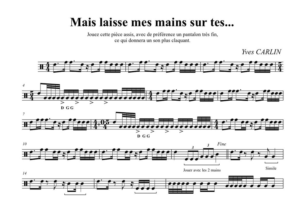 Compositeurs / Arrangeurs: Carlin Yves Collections: Percus Sons Instruments: Percussion Corporelle