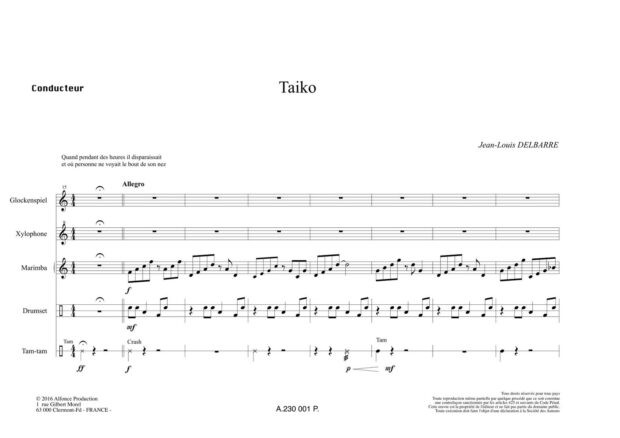 Conte musical - Texte et illustrations de Nadege Brasseur - Avec xylophone, marimba, drumset 1, drumset 2, tam tam, bass drum et timbales.
